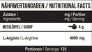 | Beschreibung: Aminosäuren Bedingt essenzielle Aminosäure Vorläufer von Stickstoffoxid GMO-frei Ein Nahrungsergänzungsmittel Vegetarisch/Vegan Arginin ist eine bedingt essenzielle basische Aminosäure, die hauptsächlich zum Harnstoffwechsel und zur Ausscheidung sowie zur DNA-Synthese und zur Proteinproduktion beiträgt. Es ist ein wichtiger Vorläufer von Stickstoffoxid (NO) und spielt daher eine Rolle bei der Erweiterung von Blutgefäßen. Empfohlener Gebrauch Nach Bedarf zweimal täglich 1 Tablette einnehmen. Zwischen den Mahlzeiten oder vor dem Schlafengehen mit mindestens 250 ml Wasser oder Saft einnehmen, um die Aufnahme zu erleichtern. Andere Inhaltsstoffe Hydroxypropylcellulose, mikrokristalline Cellulose, Stearinsäure (pflanzliche Quelle), Croscarmellose-Natrium, Siliciumdioxid und vegetarischer Überzug. |