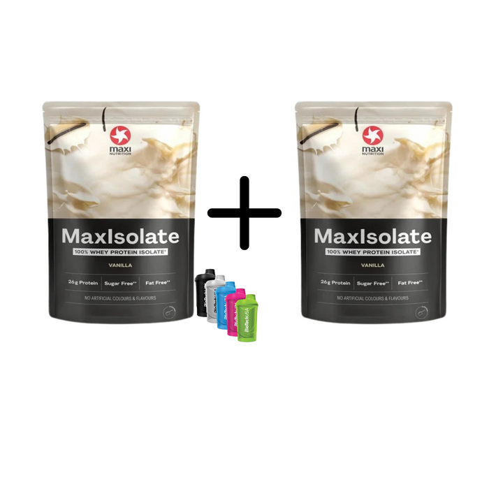 2x MaxiNutrition MaxIsolate 100% Whey Protein Isolate 1000g + gratis Shaker